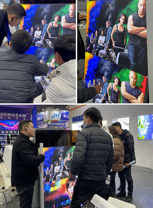 此次展會(huì)現(xiàn)場鴻盛數(shù)碼展示了市場uv軟膜燈箱與鴻盛水性乳膠打印紡織品廣告布燈箱,讓客戶現(xiàn)場對比2種方案的差異,也引起了不少客戶對乳膠的興趣。