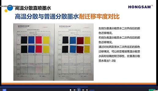 高溫分散對標傳統分散有綠色化生產,節約能源,數字柔性化、個性化生產等優勢;針對熱轉印具有優異的色牢度,耐高溫、耐遷移、耐日曬、滲透好、無翻紗露白等;從印染產業升級的角度上看,高溫分散直噴方案在市場上都具有明顯優勢,隨著數碼化發展,進程必定大大加快。