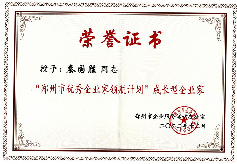有家國情懷,志存高遠;持續學習,行業翹楚;上擔責任,下愛員工;領航一個行業,帶動一方經濟;領導一個企業,成長一批人才。秦國勝先生被評為“鄭州市優秀企業家領航計劃成長型企業家”,實至名歸。