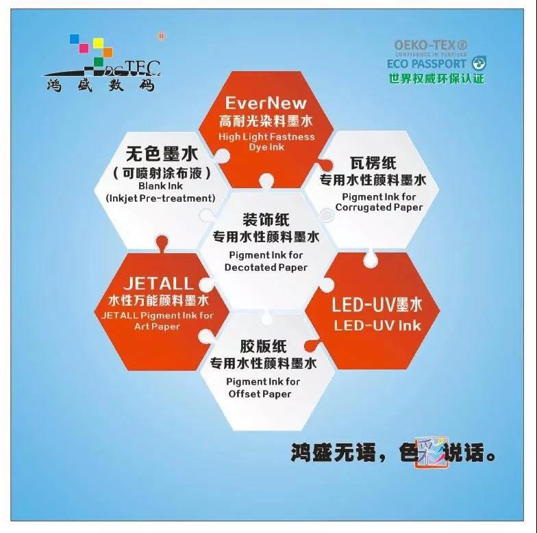 鴻盛數碼作為一家專注18年噴墨墨水生產研發的上市企業,在本次展會將攜全系列數碼印刷墨水亮相展會現場。現場更有RCT技術牛皮紙、裝飾紙無涂層打印以及鴻盛數碼專業的技術團隊與您現場分享與交流。精彩紛呈,誠意相邀您的到來!