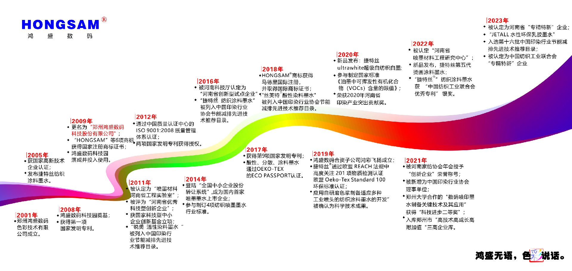 鄭州鴻盛數(shù)碼科技股份有限公司成立于2001年,是一家專注噴墨墨水研發(fā)、生產(chǎn)、銷售的國(guó)家高新技術(shù)企業(yè),噴墨行業(yè)中國(guó)新三板掛牌企業(yè)(股票代碼430616),公司自成立以來(lái),始終致力于數(shù)碼噴墨技術(shù)的研究、開(kāi)發(fā)及應(yīng)用推廣,開(kāi)發(fā)、生產(chǎn)適應(yīng)數(shù)碼噴墨技術(shù)進(jìn)步的功能性、環(huán)保型噴墨墨水,并向客戶提供數(shù)碼噴墨印刷整體解決方案和服務(wù)。