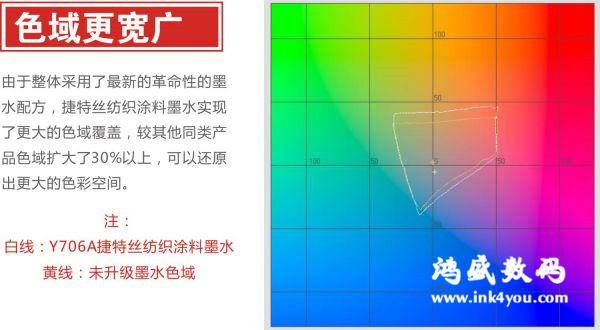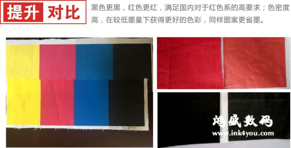 自問世以來,紡織涂料墨水經歷了3次重大技術革新,依次提升了墨水的流暢性、色域、色彩飽和度和耐摩擦牢度。尤其是此次升級,除了色彩和牢度基本上接近活性染料墨水之外,鴻盛特推出理工、精工、柯美、京瓷、星光等工業噴頭專用的紡織涂料墨水。
