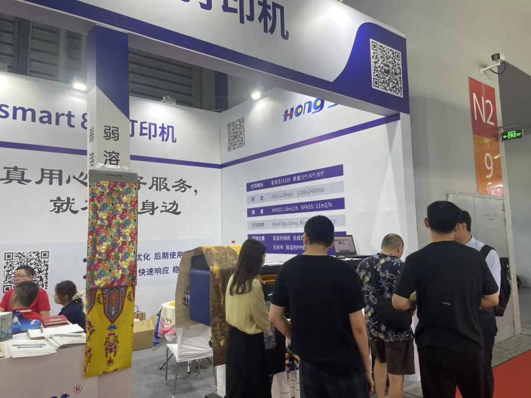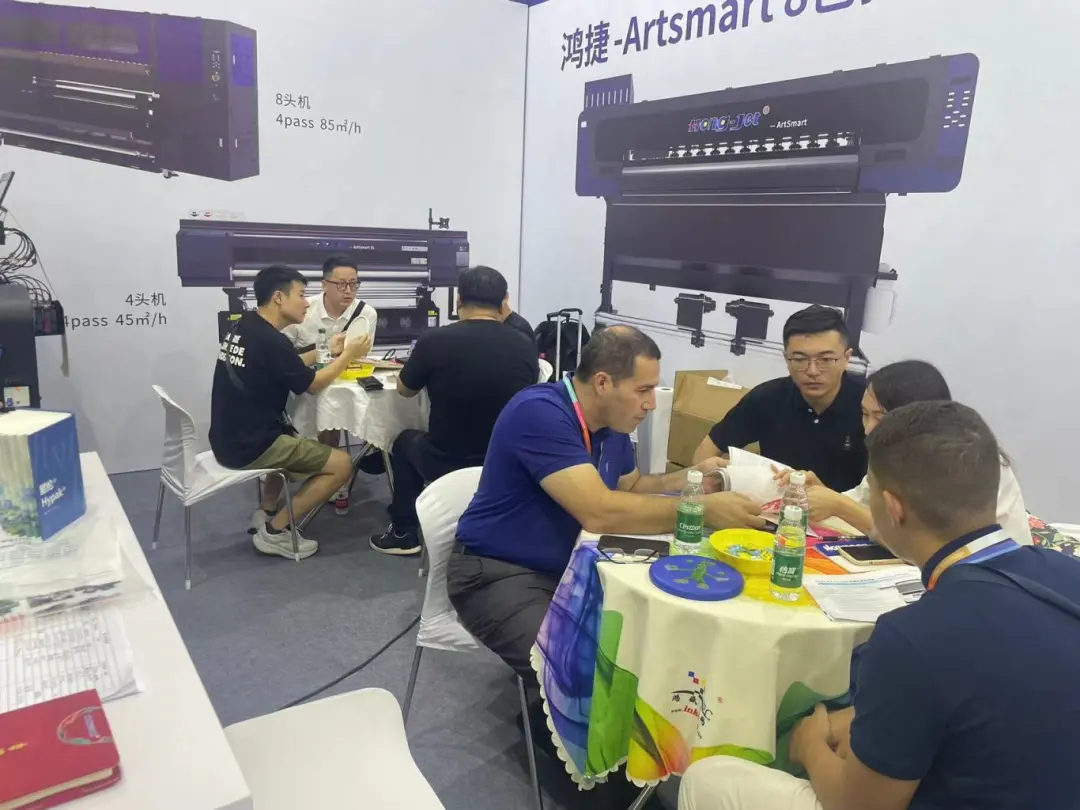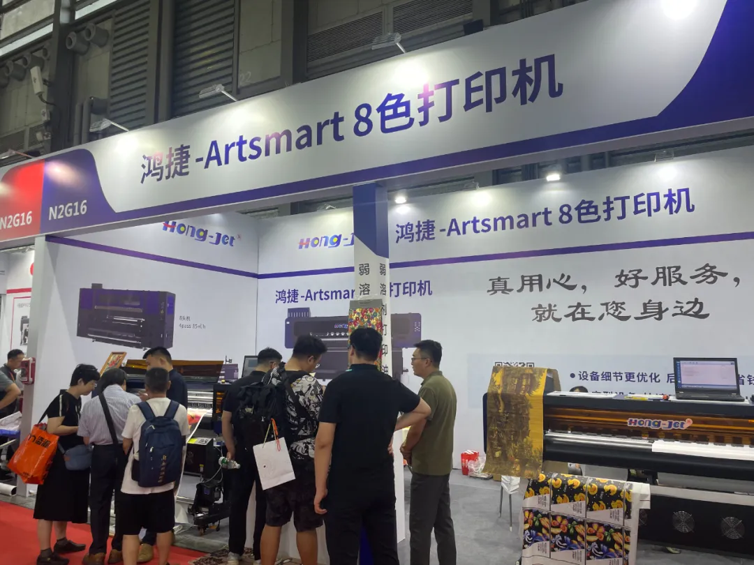 鴻盛數(shù)碼深耕噴墨行業(yè)23年,本次展會展示旗下HONGJET-artsmart8色雙頭數(shù)碼打印機、HJ-6090L乳膠平板打印機、HJ-1808L乳膠打印機、數(shù)碼影像系列墨水(EverNew®高耐光染料墨水、鴻彩6®納米顏料墨水)及水性環(huán)保乳膠墨水打印方案、不僅涵蓋了墨水及設備,還滿足不同客戶需求的打印方案,吸引了眾多觀眾前來了解咨詢。