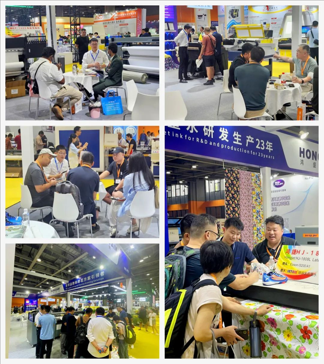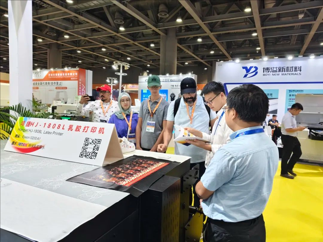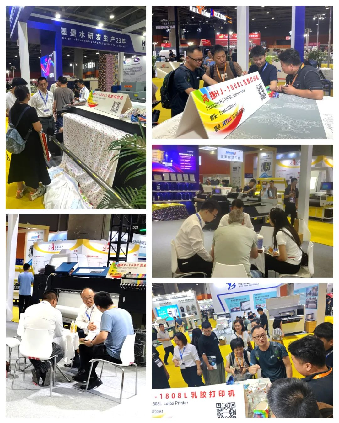鴻盛數(shù)碼深耕噴墨行業(yè)23年,本次展會(huì)展示旗下HJ-1808L皮革打印機(jī)、HJ-1604L乳膠寫真機(jī)、HJ-6090L乳膠平板打印機(jī),水性乳膠打印方案、鴻盛數(shù)碼全系列墨水(數(shù)碼印花、數(shù)碼影像、數(shù)碼印刷)等多款主力產(chǎn)品重磅出席此次展會(huì)。不僅涵蓋了墨水及設(shè)備,還滿足不同客戶需求的打印方案,吸引了眾多觀眾前來了解咨詢。