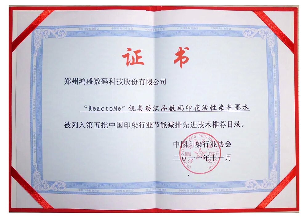 2024年,“HONGSAM®陽離子染料墨水”入選第十七批中國印染行業節能減排先進技術推薦目錄