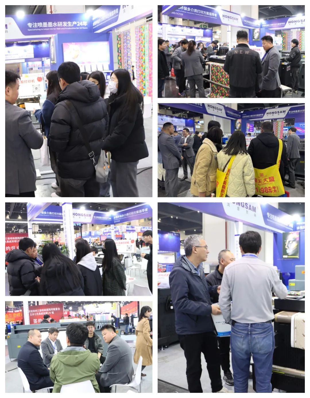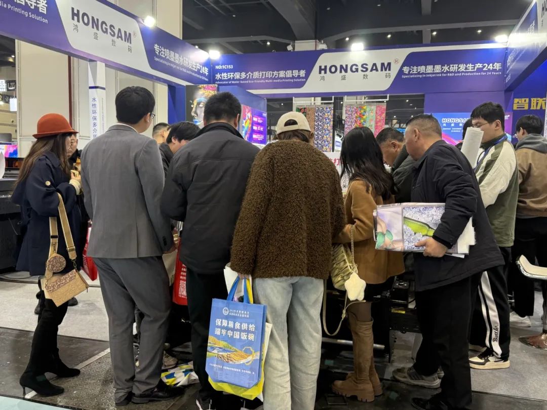 在展會現場,鴻盛數碼的展位成為了行業新老客戶的聚焦點。客戶們紛紛駐足于打印展示區域,近距離地觀賞著產品的展示方案。通過現場的精彩展示和詳盡講解,鴻盛數碼的全系列噴墨墨水產品及打印方案贏得了客戶們的高度贊譽!
